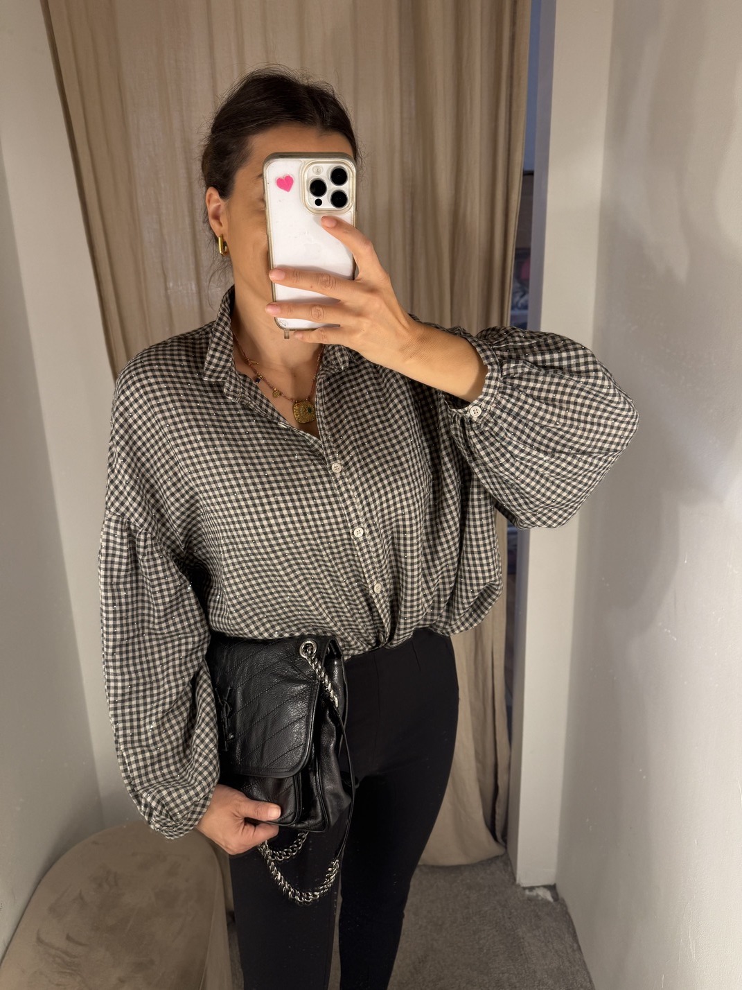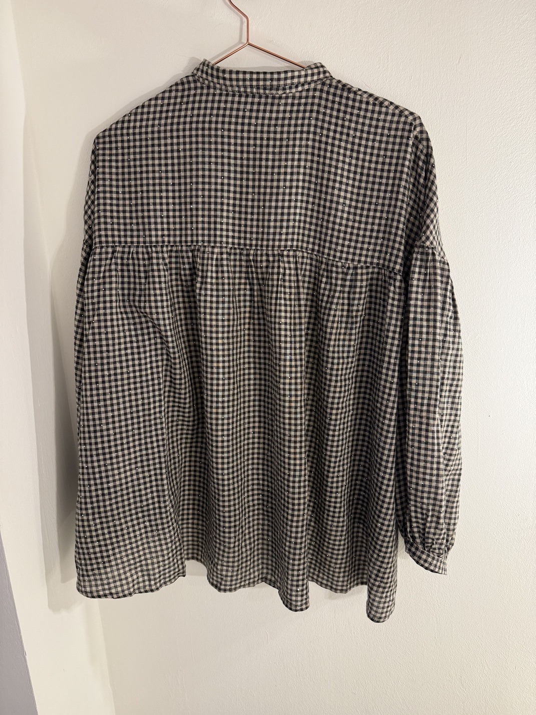 Vichy Bluse weiss schwarz mit Glitzersteinchen