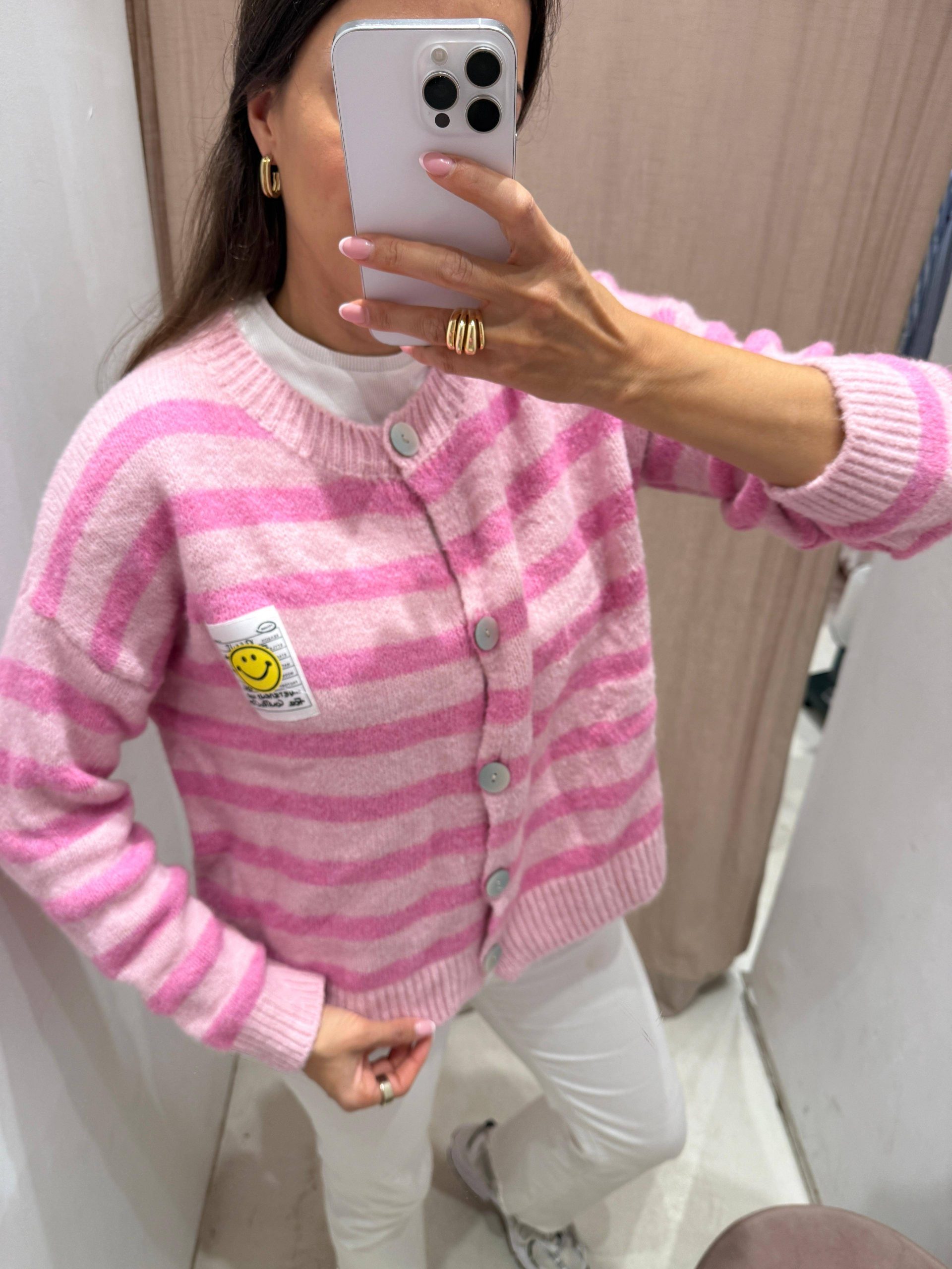 Smiley Cardigan in Pink und Rosa gestreift