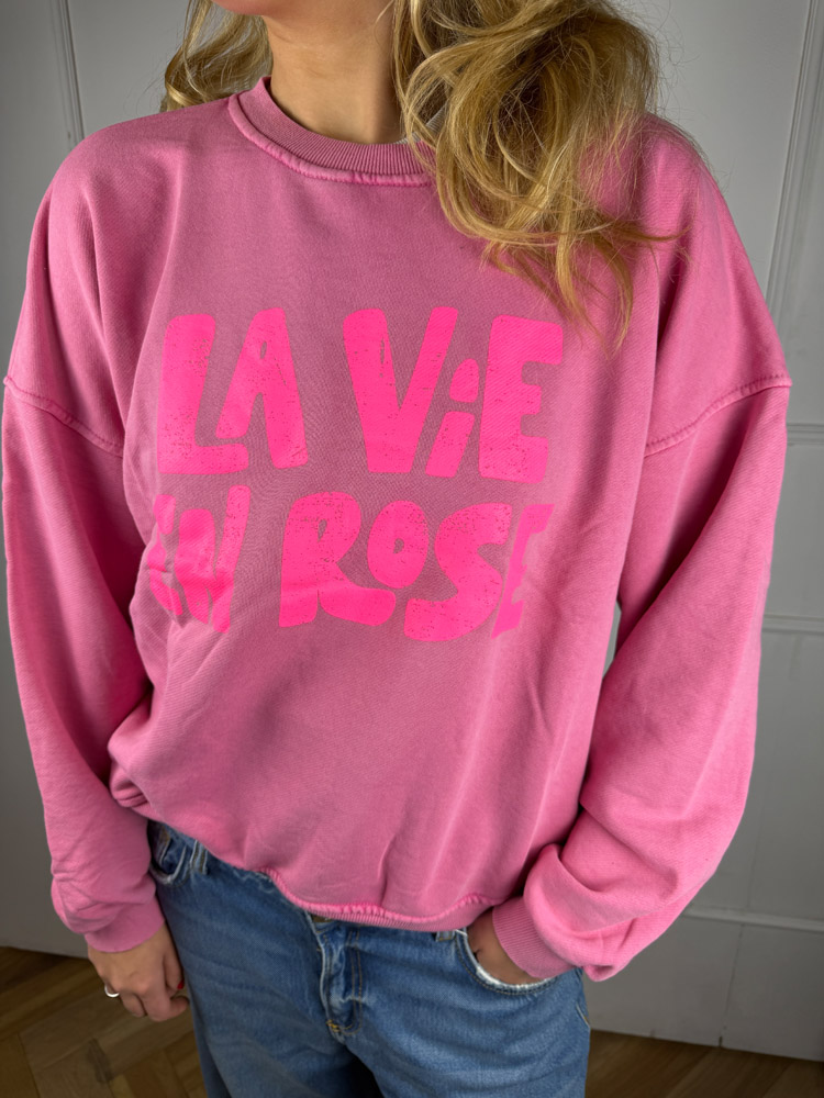 Soho Sweater – Rosa mit neonpinker „La Vie en Rose“-Aufschrift