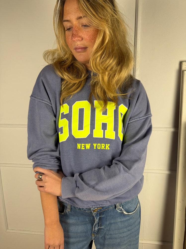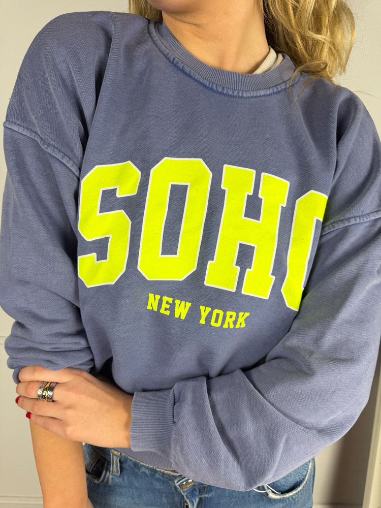 Soho Sweater – Blau mit grüner Aufschrift