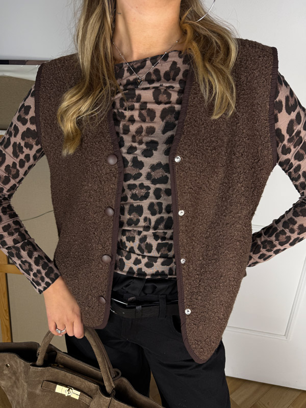 Cozy Teddyweste in Coffee Braun