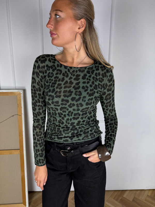 Leo Langarmshirt in Waldgrün mit Leo-Print