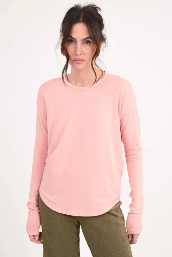 - Das Long-Sleeved Shirt Alania von Love Joy Victory ist ein vielseitiger Essential-Style, der Komfort und einen cleanen Look verbindet. Der klassische Rundhalsausschnitt und die schmal geschnittenen, langen Ärmel verleihen dem Shirt eine feminine, figurnahe Silhouette.