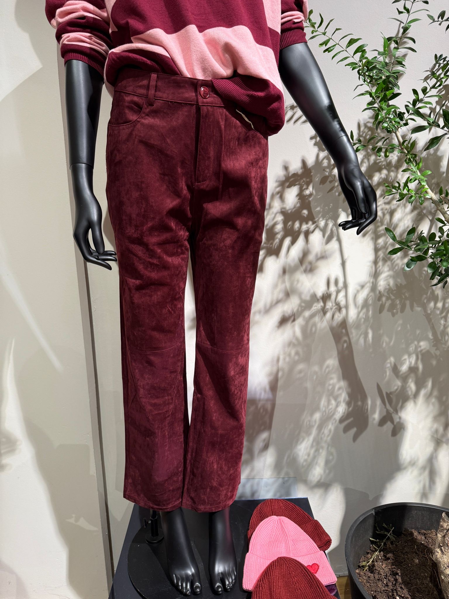 Hose in Bordeaux Low Waist und in Wildleder optik