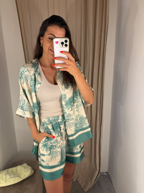 - Style: Wunderschön zu weißen Hosen, Leinenröcken oder Shorts. Auch als Co-Ord mit dem passenden Rock ein frischer, französisch inspirierter Sommerlook.