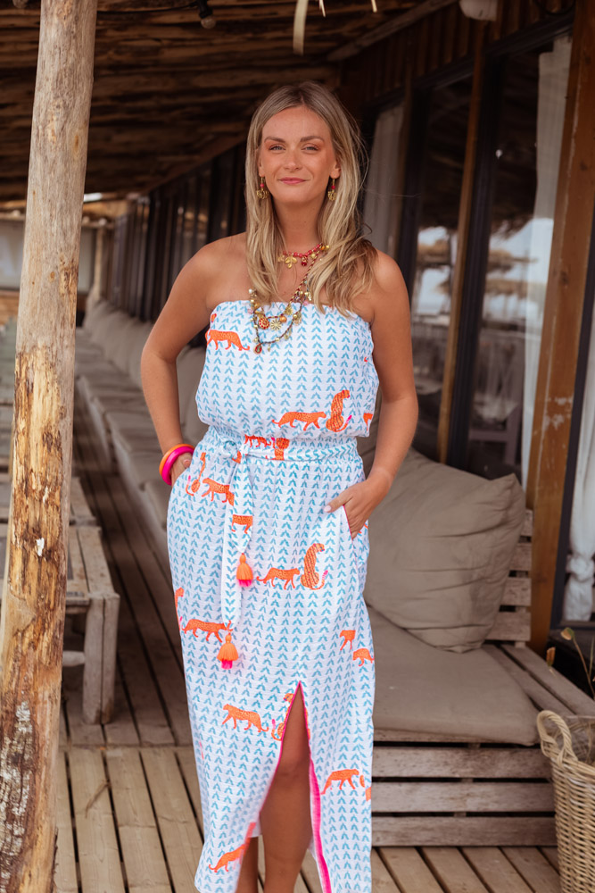 - Styling-Tipp: Kombiniere das Kleid mit Sandalen oder Espadrilles. Strohhut, Basttasche und Goldschmuck unterstreichen den entspannten Boho-Sommerlook.